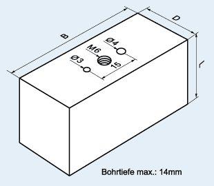 E-Cu-Rohling,flach m. 1xGew./2Stiftbohr. BxDxL: 40 x30 x 40 mm, System EROWA |
